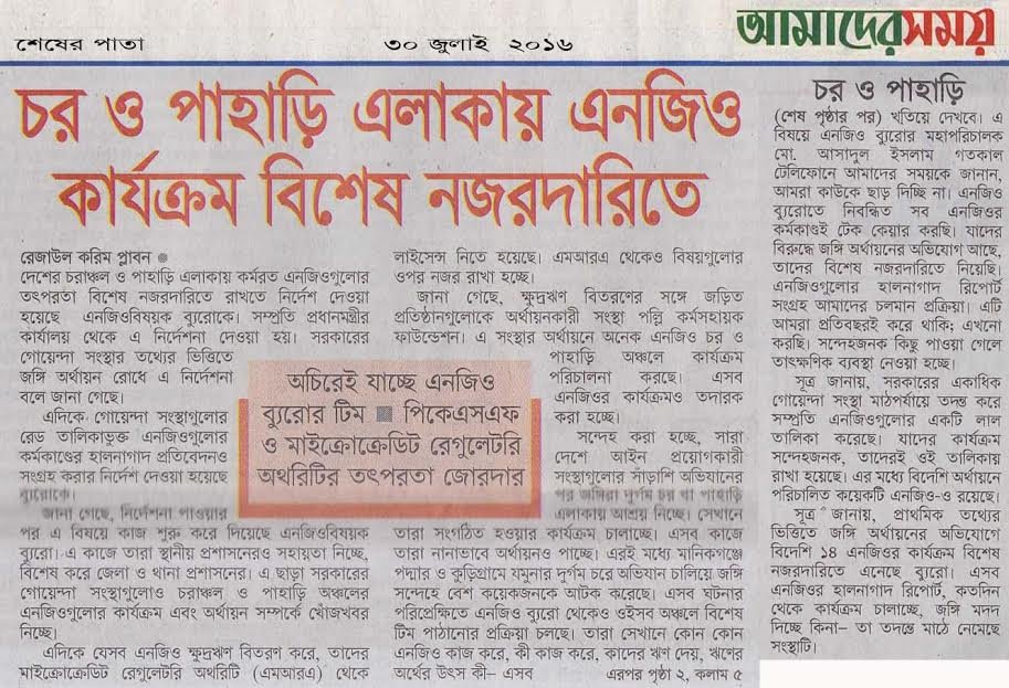 চর ও পাহাড়ি এলাকায় এনজিও কার্যক্রম বিশেষ নজরদারিতে