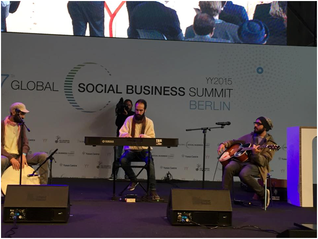 ছবি ৩: ৪ নভেম্বর ২০১৫ তারিখে জার্মানীর বার্লিনে শুরু ৭ম বিশ্ব সামাজিক ব্যবসা শীর্ষ সম্মেলনের উদ্বোধনী অনুষ্ঠানে সংগীত পরিবেশন করছেন কয়েকজন সিরিয়ান রিফিউজি।