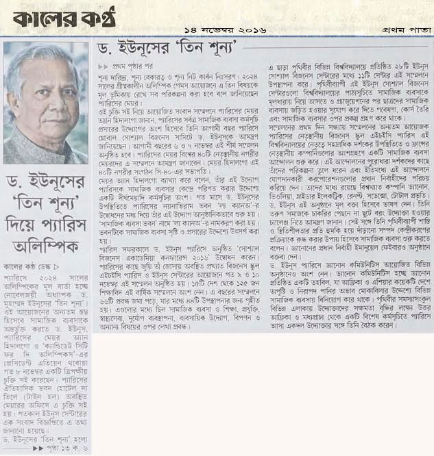 ড. ইউনূসের ‘তিন শূন্য’ হলো শূন্য দারিদ্র্য, শূন্য বেকারত্ব ও শূন্য নিট কার্বন নিঃসরণ। ২০২৪ সালের গ্রীষ্মকালীন অলিম্পিক গেমস আয়োজনে এ তিন বিষয়কে মূল ভূমিকায় রেখে সব পরিকল্পনা করা হবে বলে জানিয়েছেন প্যারিসের মেয়র।