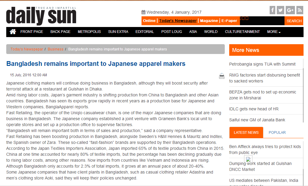 Source Link: http://www.daily-sun.com/printversion/details/151090/Bangladesh-remains-important-to-Japanese-apparel-makers