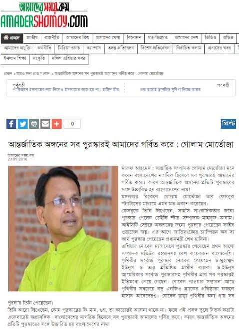 সাপ্তাহিক সম্পাদক গোলাম মোর্তোজা মনে করেন বংলাদেশের নাগরিক হিসেবে সব পুরস্কারই আমাদের গর্বিত করে। কারণ আন্তর্জাতিক অঙ্গনের প্রতিটি পুরস্কারের সঙ্গে উচ্চারিত হয় বাংলাদেশের নাম!