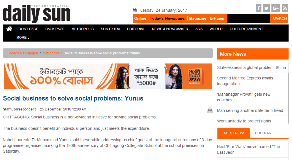 Source Link: http://www.daily-sun.com/printversion/details/193741/Social-business-to-solvesocial-problems:-Yunus