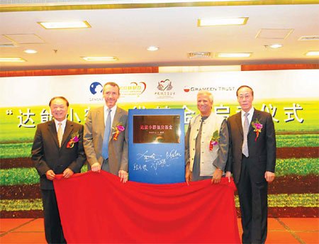 With the help of the State Council Leading Group Office of Poverty Alleviation and Development, Danone Microfinance Foundation was set up by Danone and Grameen Trust under Grameen Group in Beijing in March 2009.