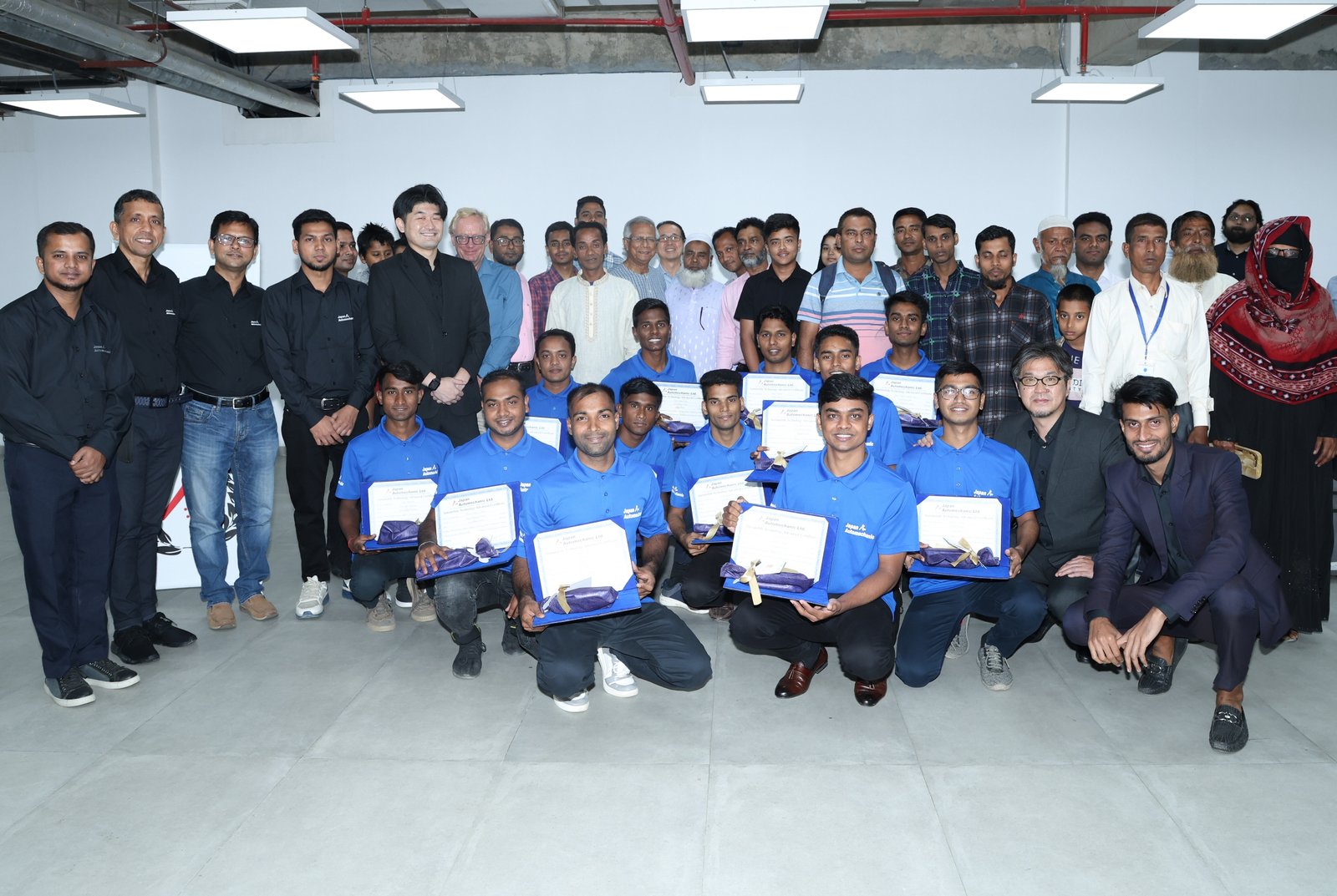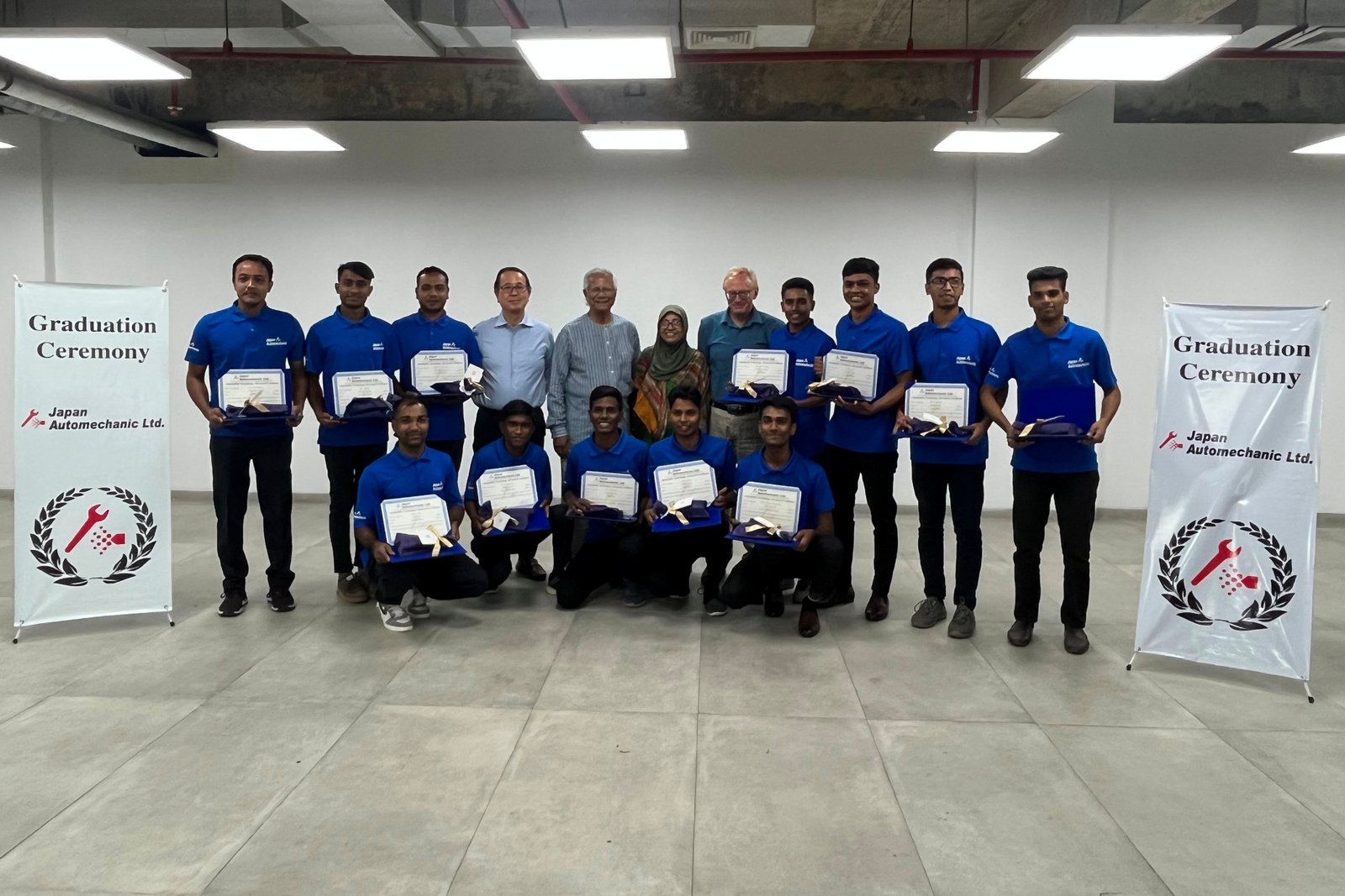 These students received two years of simultaneous training in automechanics and Japanese language by the school established by Japan Automechanic Ltd. (JAL) – a Social Business joint venture created by SK Dream of Japan and Grameen Shikkha, an organization founded by Nobel Laureate Professor Muhammad Yunus.