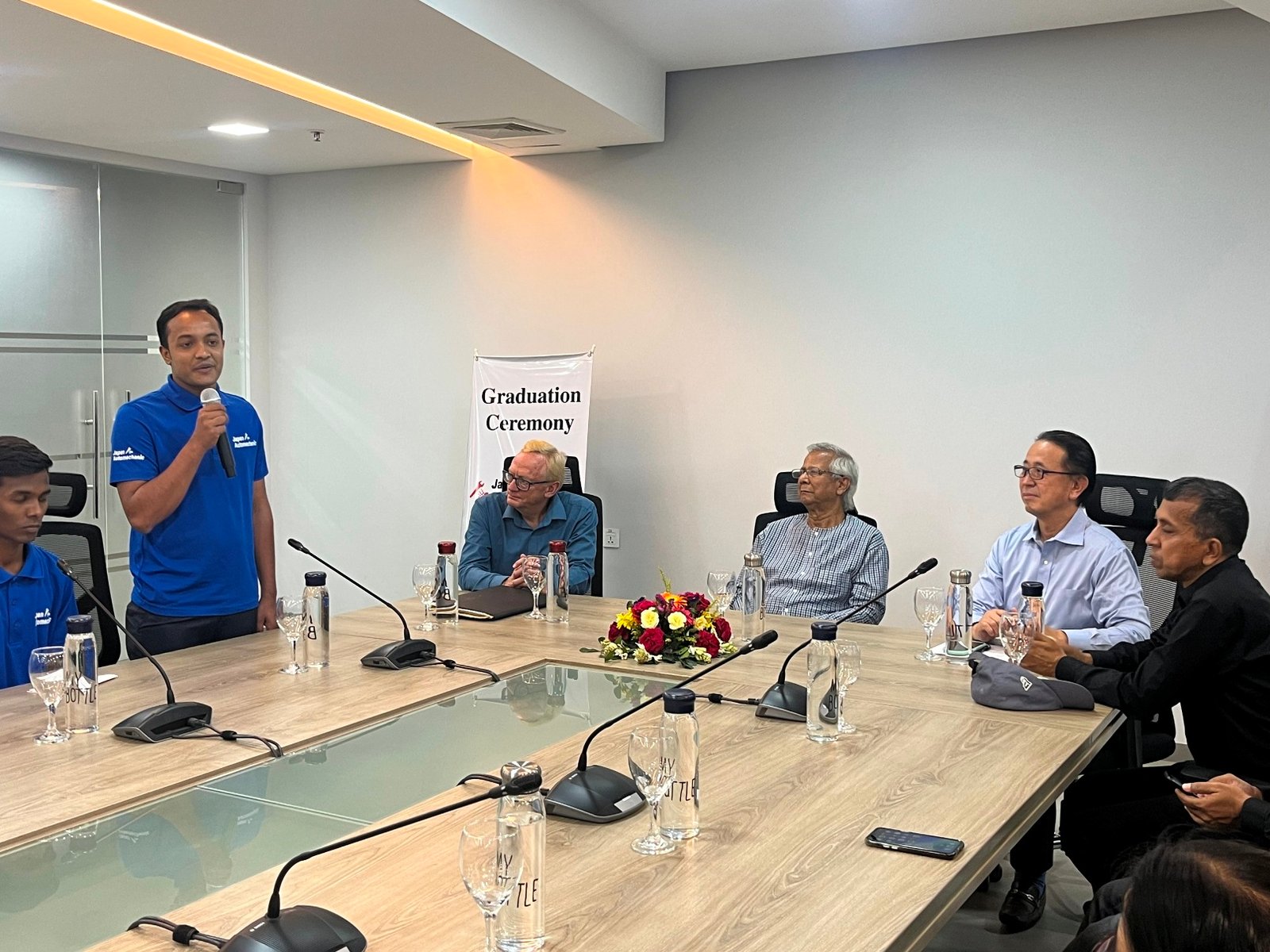 The graduation ceremony of the students of the last batch was held at Telecom Bhaban, Mirpur, Dhaka on 14 March 2023. The ceremony was chaired by Professor Yunus, Chairman of JAL. Mr. Tsuneaki Hirao, Managing Director of Japan Automechanic Ltd. and Managing Directors of different Grameen companies attended the ceremony. Family members of the graduating students also attended the program. At the ceremony all students made speeches in fluent Japanese language. They were taught by Japanese teachers. They spoke about their training, aspirations and future plans. All of the students have already been selected under the TITP (Technical Intern Training Program) – an overseas workers employment opportunity in Japanese companies under the recently promulgated Technical Intern Training Act of Japan Government – and have got jobs in different automobile companies in Japan. Two JAS graduates are already working in a Mercedes Benz Dealership company in Japan. Mr. Tsuneaki Hirao, Managing Director of Japan Automechanic Ltd., announced during the ceremony that from now on a group of 10-12 JAS graduates will go to Japan every year to work under TITP.